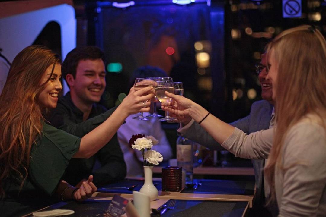 As you step onboard, you’ll be greeted with a glass of fizz before enjoying a delicious 4-course dinner. The live performer will set the mood with popular hits throughout the evening, so you’ll be singing and dancing all night long. For a more tranquil atmosphere, head to the open deck upstairs and admire the passing landmarks.